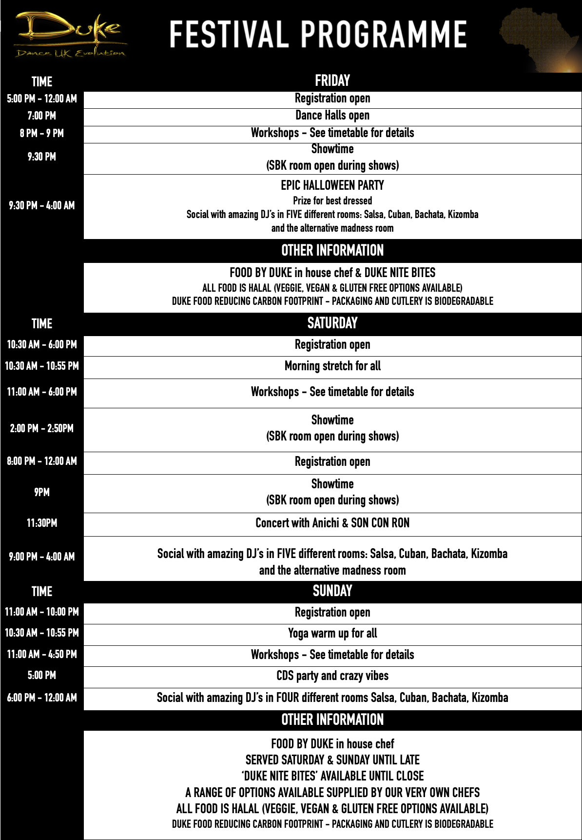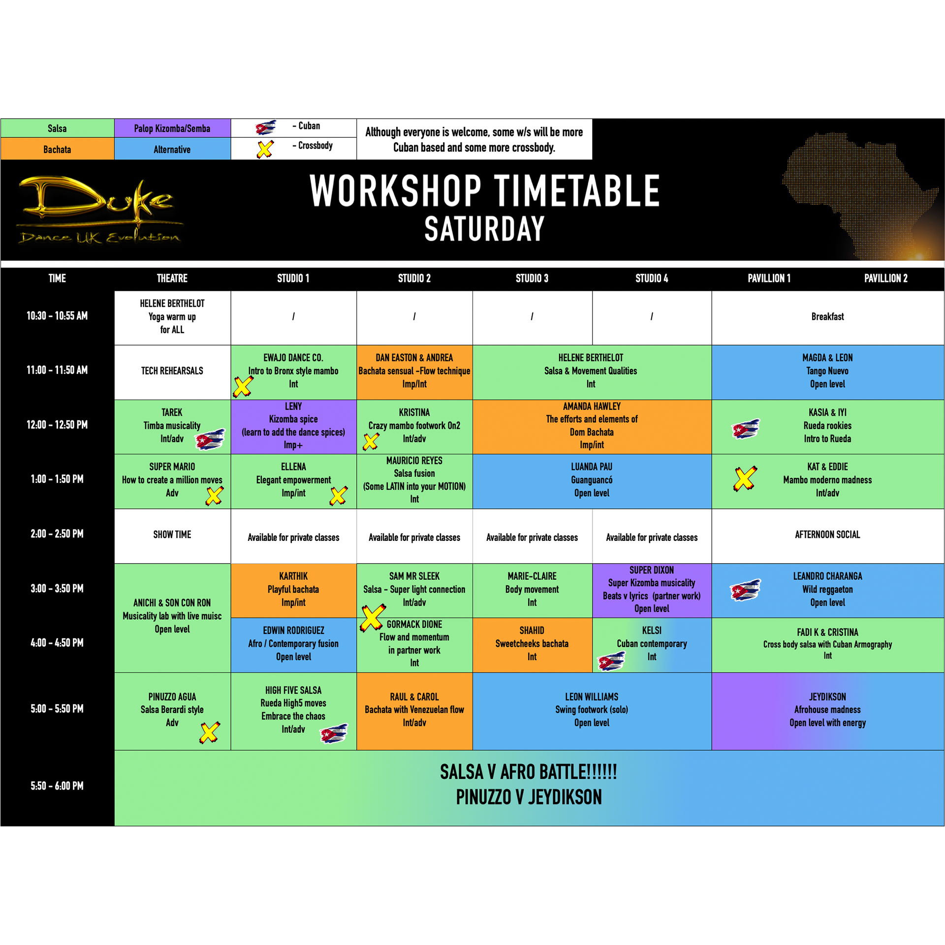 Please note that this programme is subject to change at any time. If you have any questions please email us at danceukevolution@gmail.com